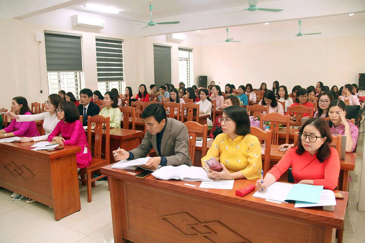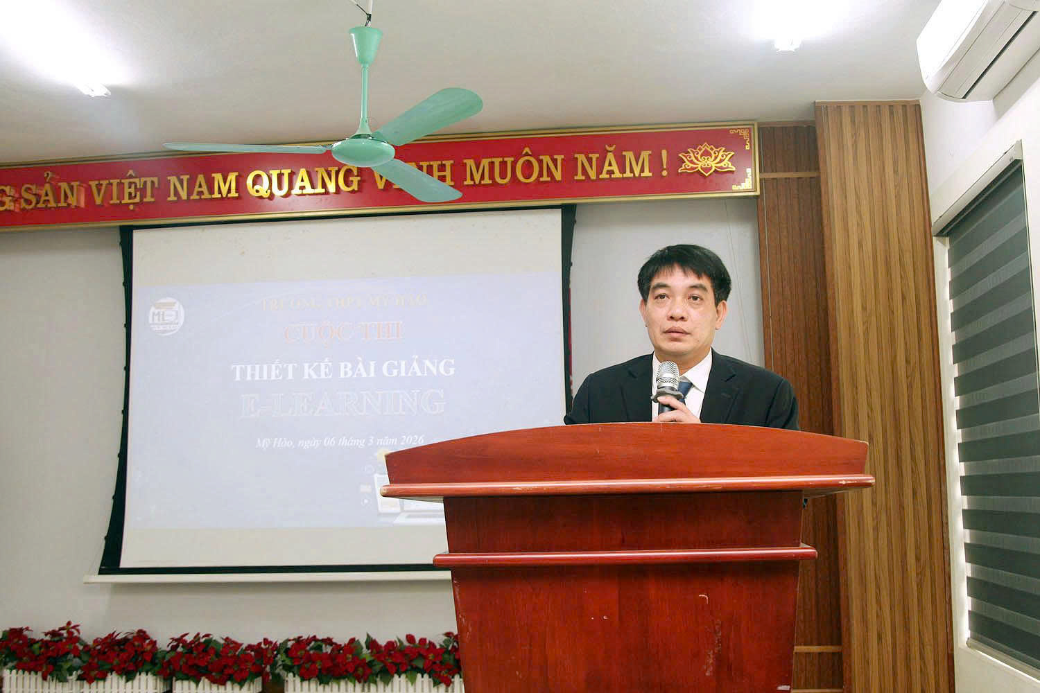 Trong không khí thi đua sôi nổi chào mừng Kỷ niệm 116 năm Ngày Quốc tế Phụ nữ 8/3 và 1986 năm cuộc khởi nghĩa Hai Bà Trưng; trước bối cảnh cuộc cách mạng công nghiệp 4.0 đang phát triển mạnh mẽ, giáo dục cần đổi mới cả về phương pháp, nội dung và hình thức tổ chức dạy học, đặc biệt, trí tuệ nhân tạo (AI) đang trở thành công cụ hỗ trợ đắc lực cho giáo viên trong việc thiết kế học liệu số, xây dựng bài giảng trực quan, sinh động, tăng cường khả năng tương tác với người học; nhằm khuyến khích đội ngũ giáo viên phát huy tinh thần sáng tạo, tích cực ứng dụng công nghệ thông tin và trí tuệ nhân tạo vào giảng dạy, đồng thời tạo diễn đàn chia sẻ kinh nghiệm thiết kế bài giảng số hiệu quả, chiều ngày 06/3/2026, trường THPT Mỹ Hào đã long trọng tổ chức Cuộc thi Thiết kế bài giảng E-learning bằng ứng dụng trí tuệ nhân tạo (AI).