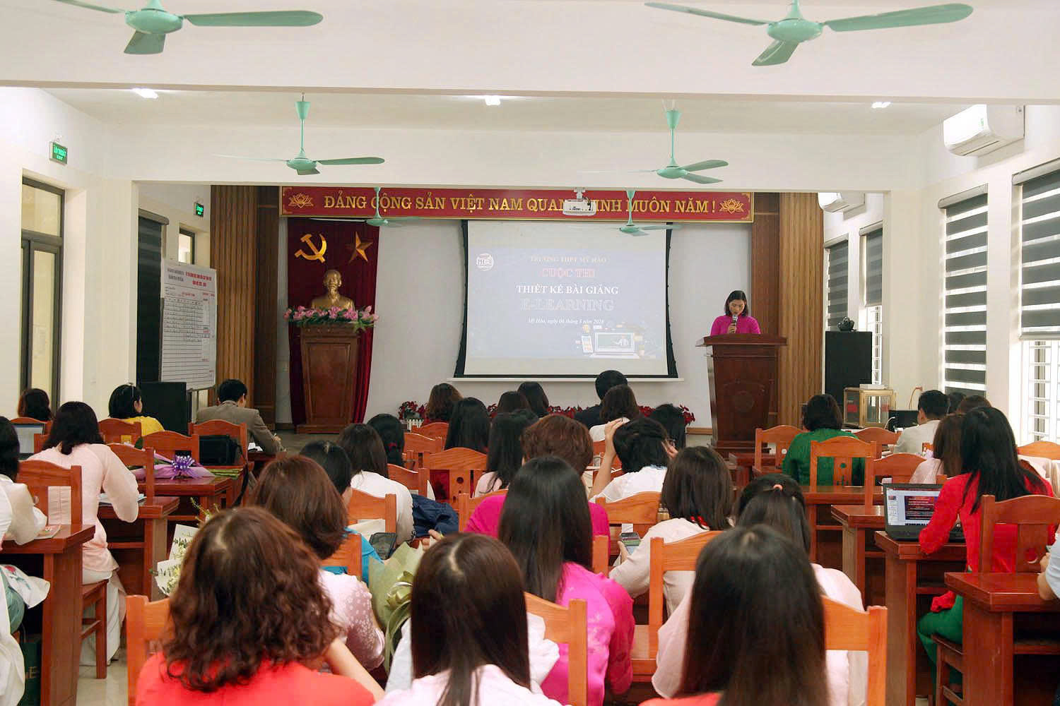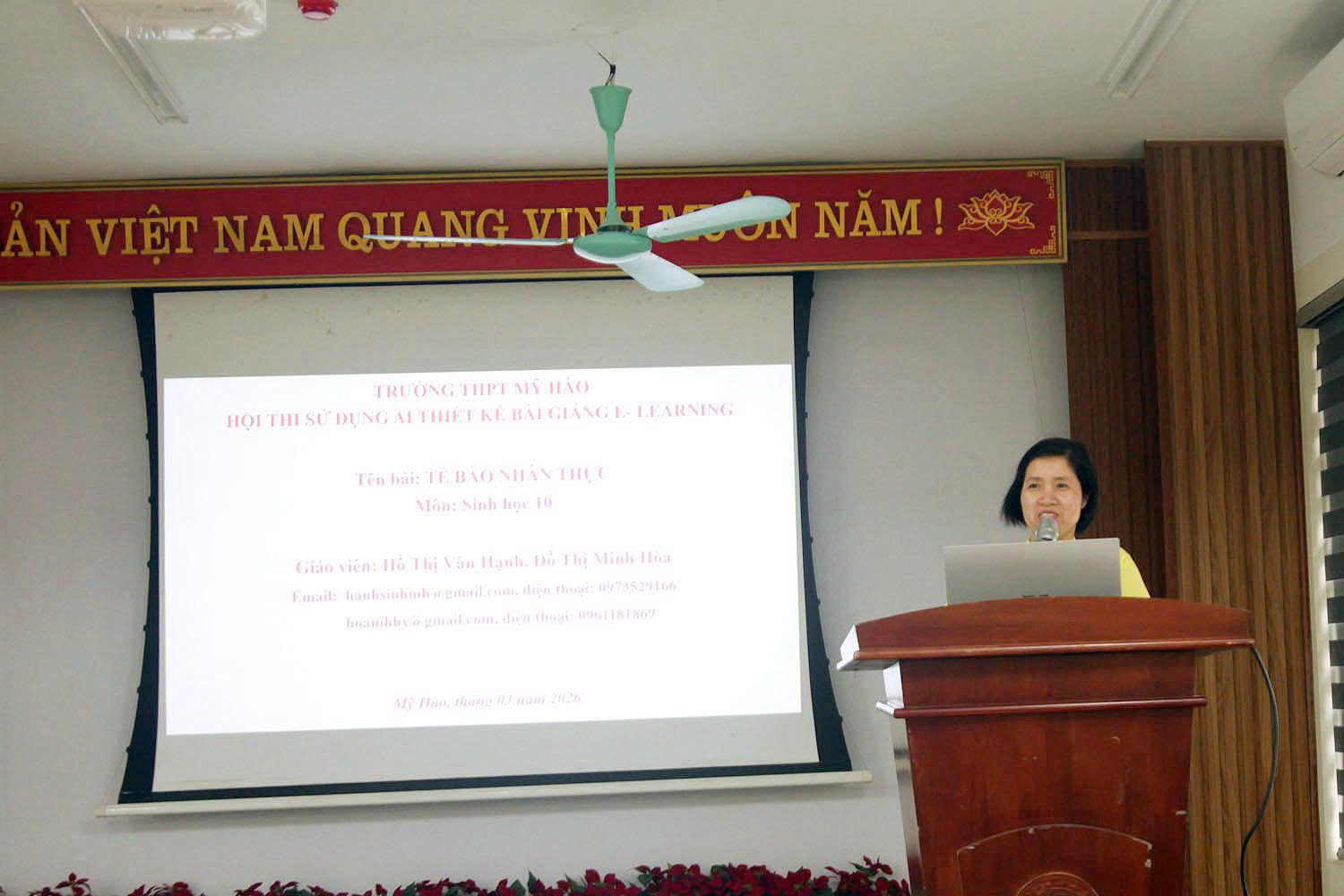 Cuộc thi Thiết kế bài giảng E-learning bằng ứng dụng trí tuệ nhân tạo (AI) năm học 2025-2026 của trường THPT Mỹ Hào đã thành công tốt đẹp. Cuộc thi là dịp để tôn vinh trí tuệ, sức sáng tạo của nhà giáo; là diễn đàn lớn để các thầy cô giáo trao đổi chuyên môn và học hỏi kinh nghiệm nhằm nâng cao chất lượng dạy học, lan tỏa tinh thần đổi mới sáng tạo và thúc đẩy mạnh mẽ quá trình chuyển đổi số trong giáo dục.